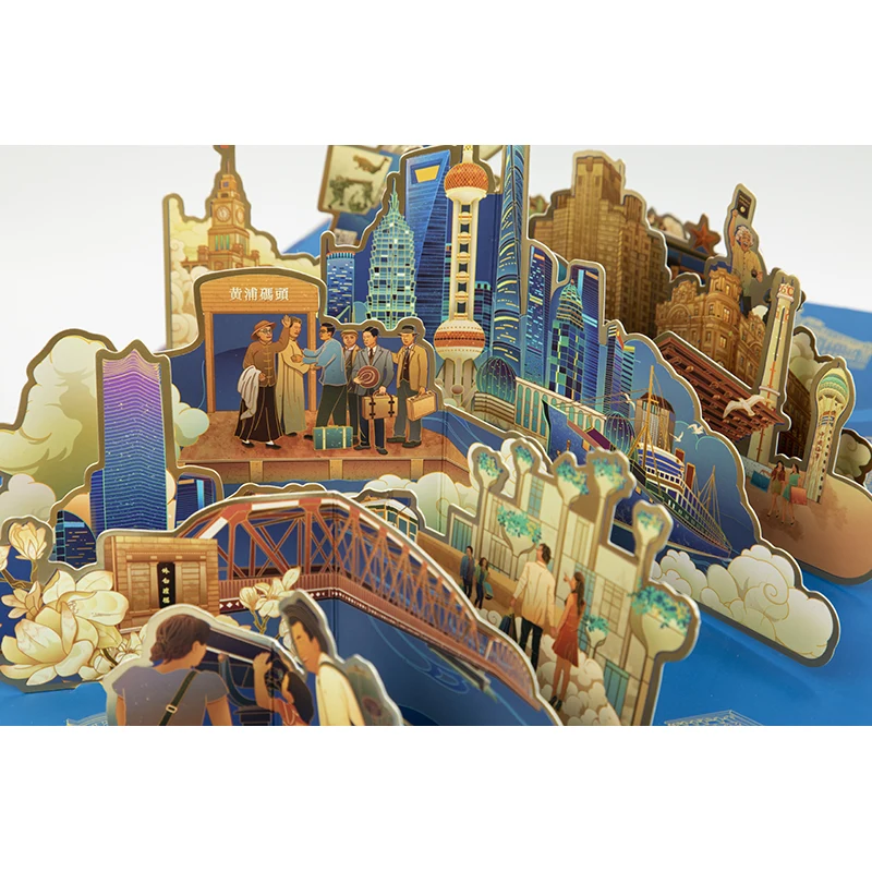 En el interior de la tapa de la caja se esconde una escultura tridimensional de papel de una ciudad. Cuando se abre, aparece automáticamente, con capas de edificios y personajes detallados. El impacto visual es muy fuerte. Al regalar, el momento de abrir la caja puede captar inmediatamente la atención del destinatario. Tiene más puntos de memoria que las cajas de regalo normales y también es adecuada para usarse como decoración de mesa para su reutilización.